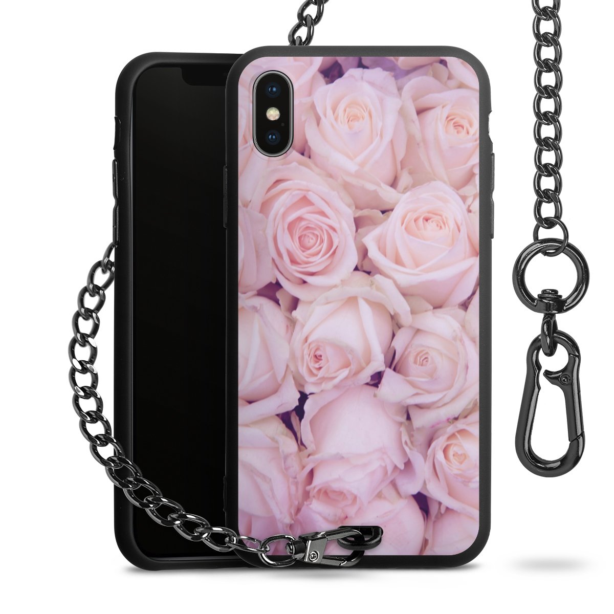 - Mattschwarze Handyhülle mit Metallkette