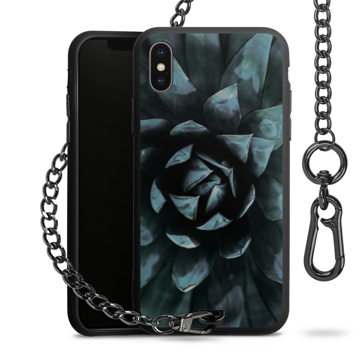 - Mattschwarze Handyhülle mit Metallkette
