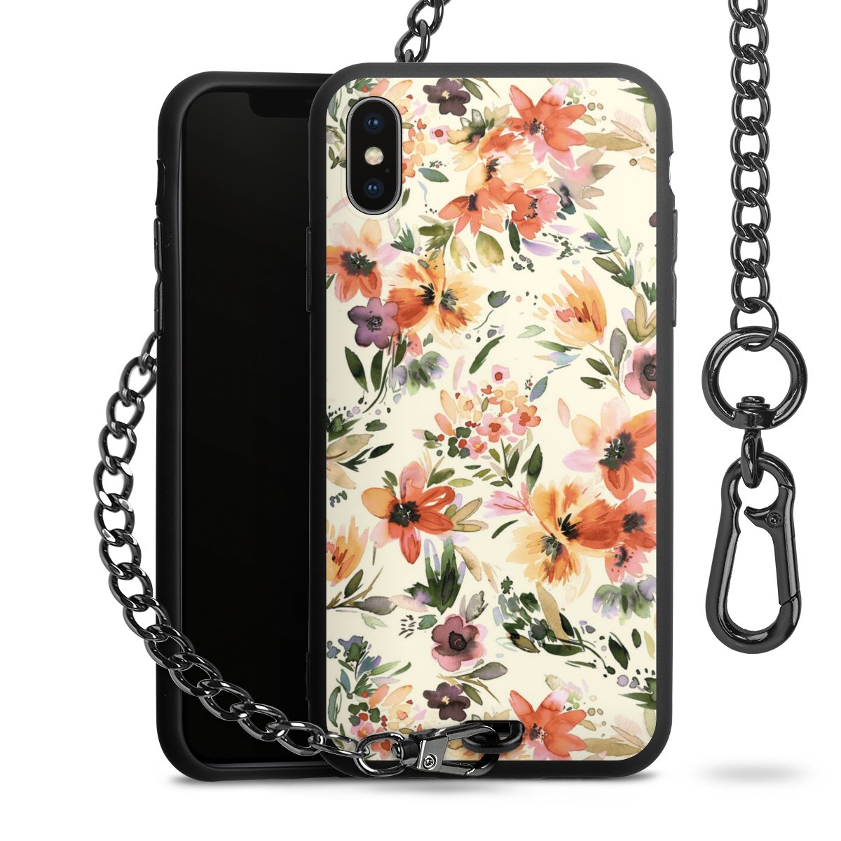 • Mattschwarze Handyhülle mit Metallkette