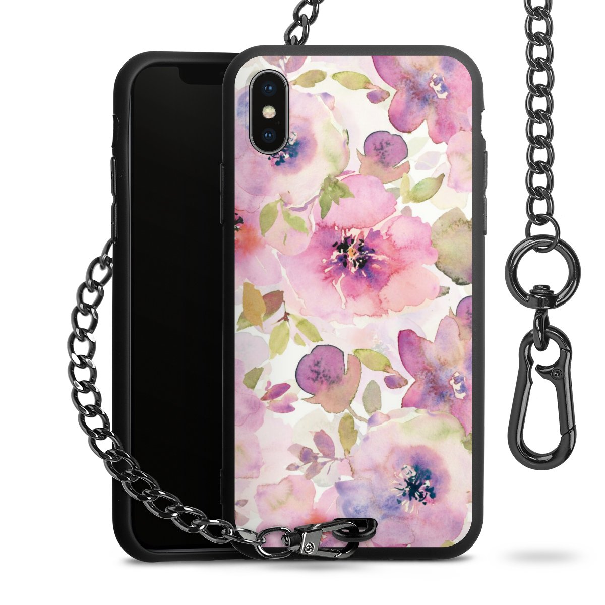 • Mattschwarze Handyhülle mit Metallkette