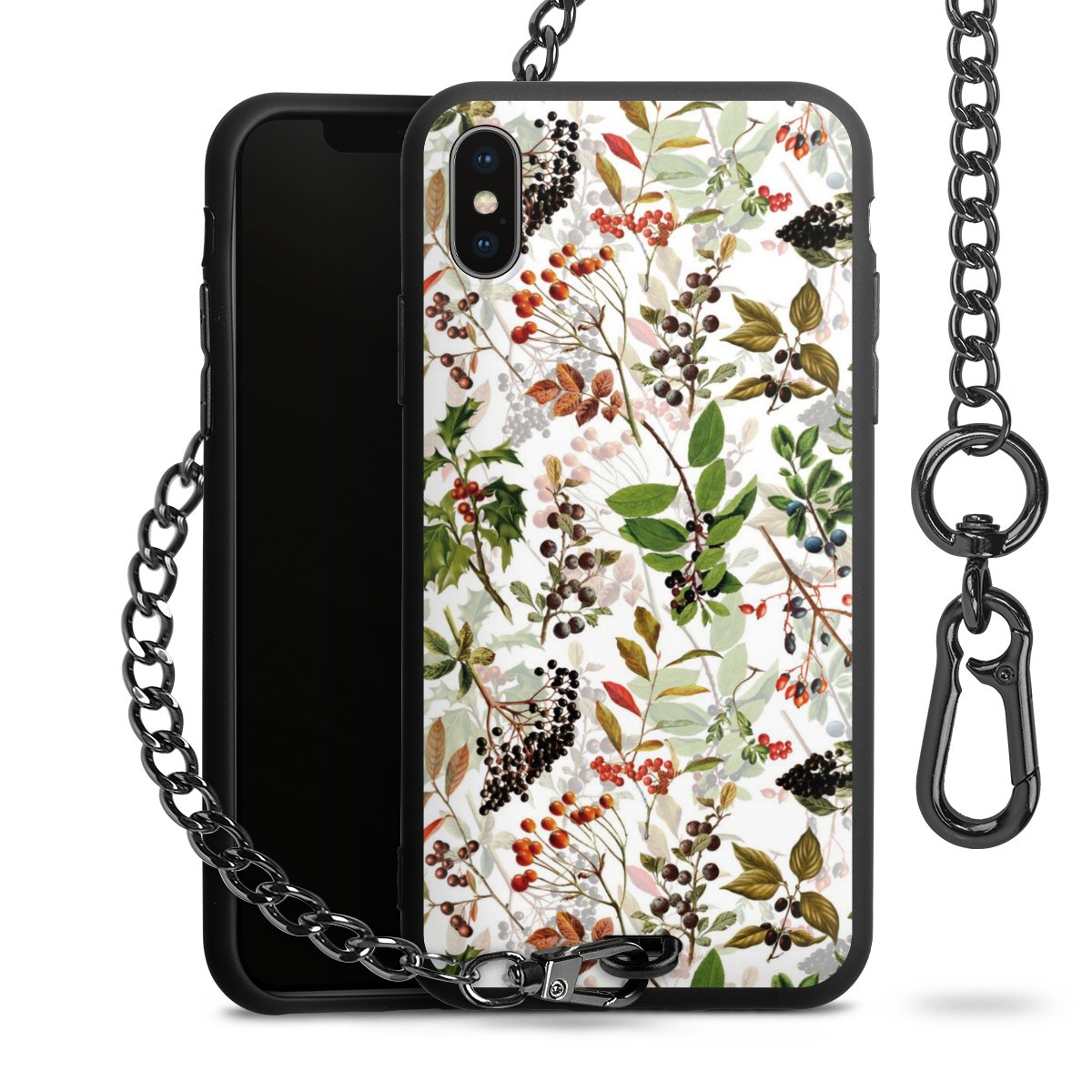 • Mattschwarze Handyhülle mit Metallkette