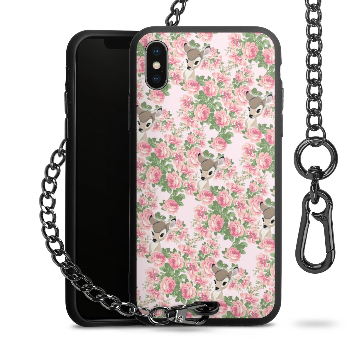 • Mattschwarze Handyhülle mit Metallkette