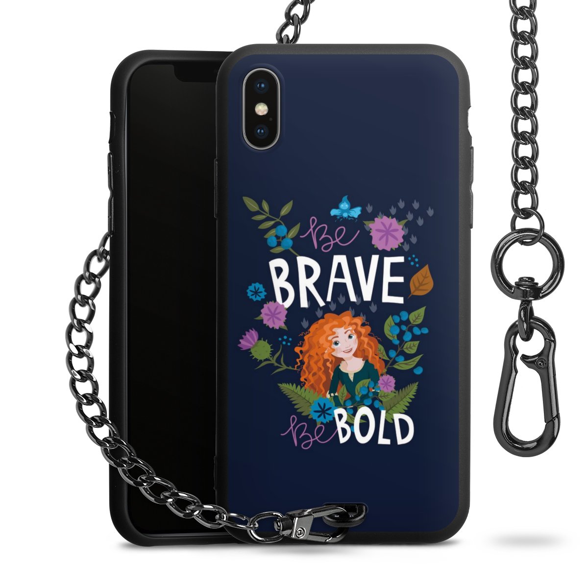 • Mattschwarze Handyhülle mit Metallkette
