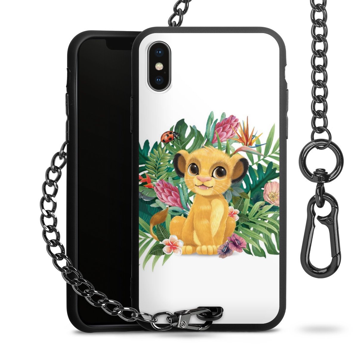 Die Handyhülle verfügt über eine mittig am unteren Rand platzierte Öse, an der die Metallkette stabil befestigt ist. Bestelle die Hülle einfach für Dein Smartphone-Modell, dann passt sie wie angegossen und Du brauchst sie bloß einmal anzudrücken. Handy in die Tasche, Karabiner an den Hosenbund – schon kann die Party starten.