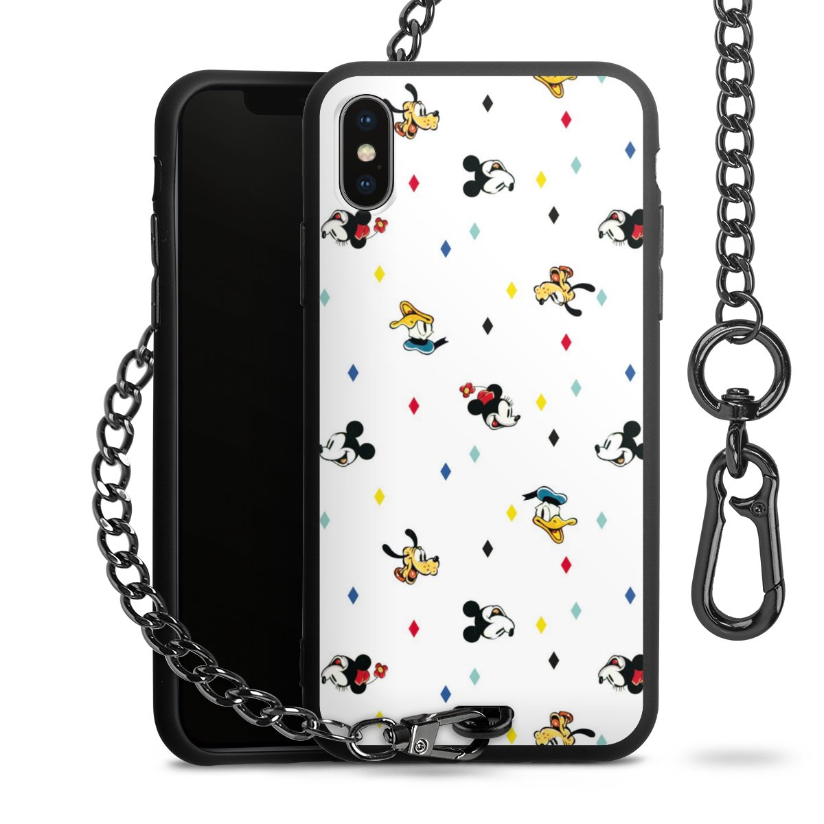 • Mattschwarze Handyhülle mit Metallkette