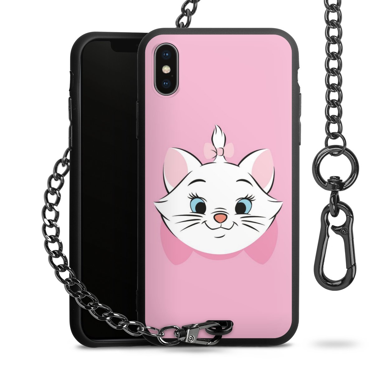 • Mattschwarze Handyhülle mit Metallkette