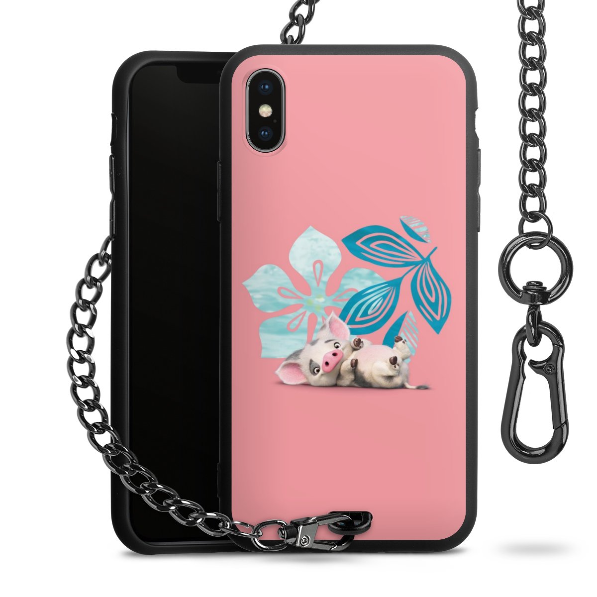 - Mattschwarze Handyhülle mit Metallkette