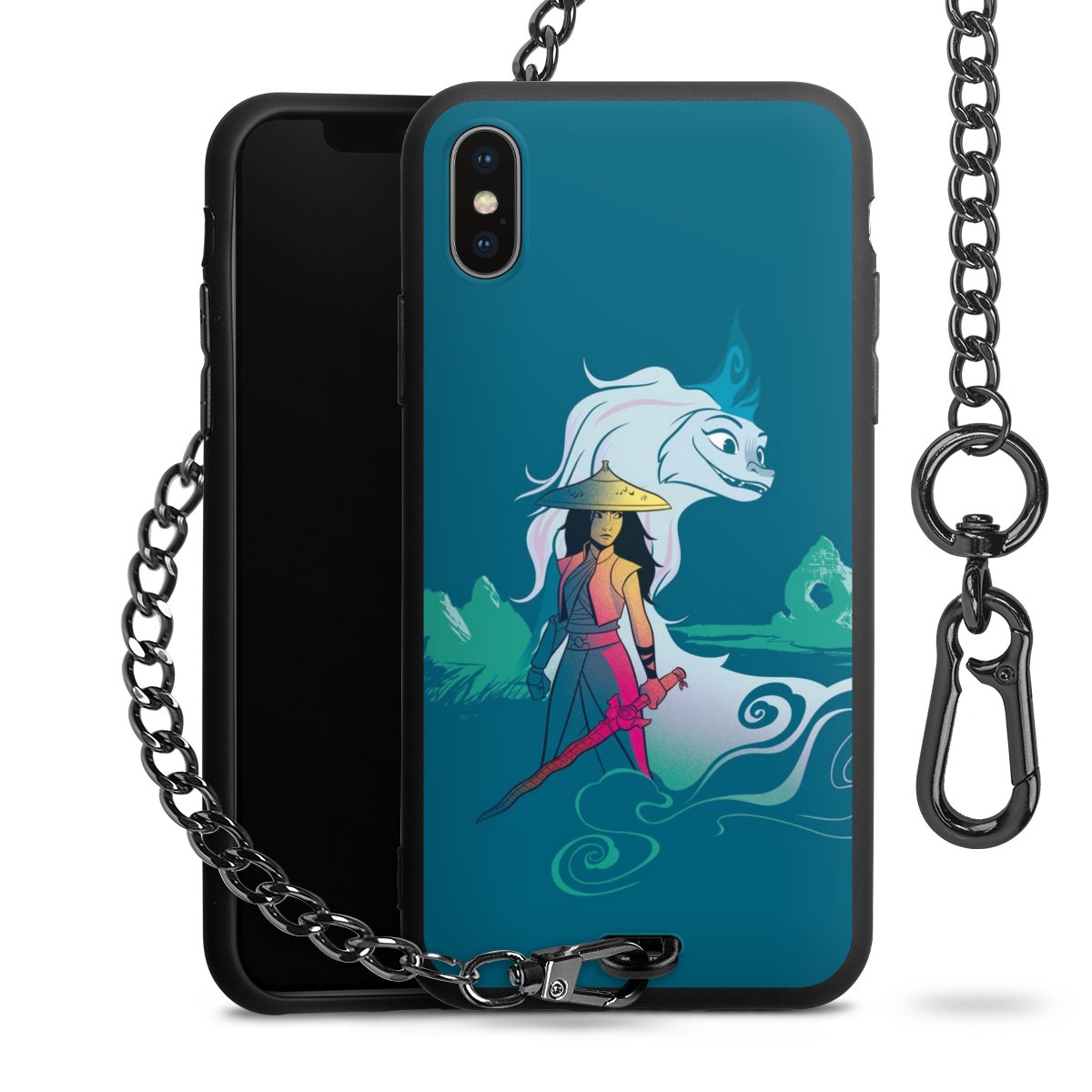 • Mattschwarze Handyhülle mit Metallkette