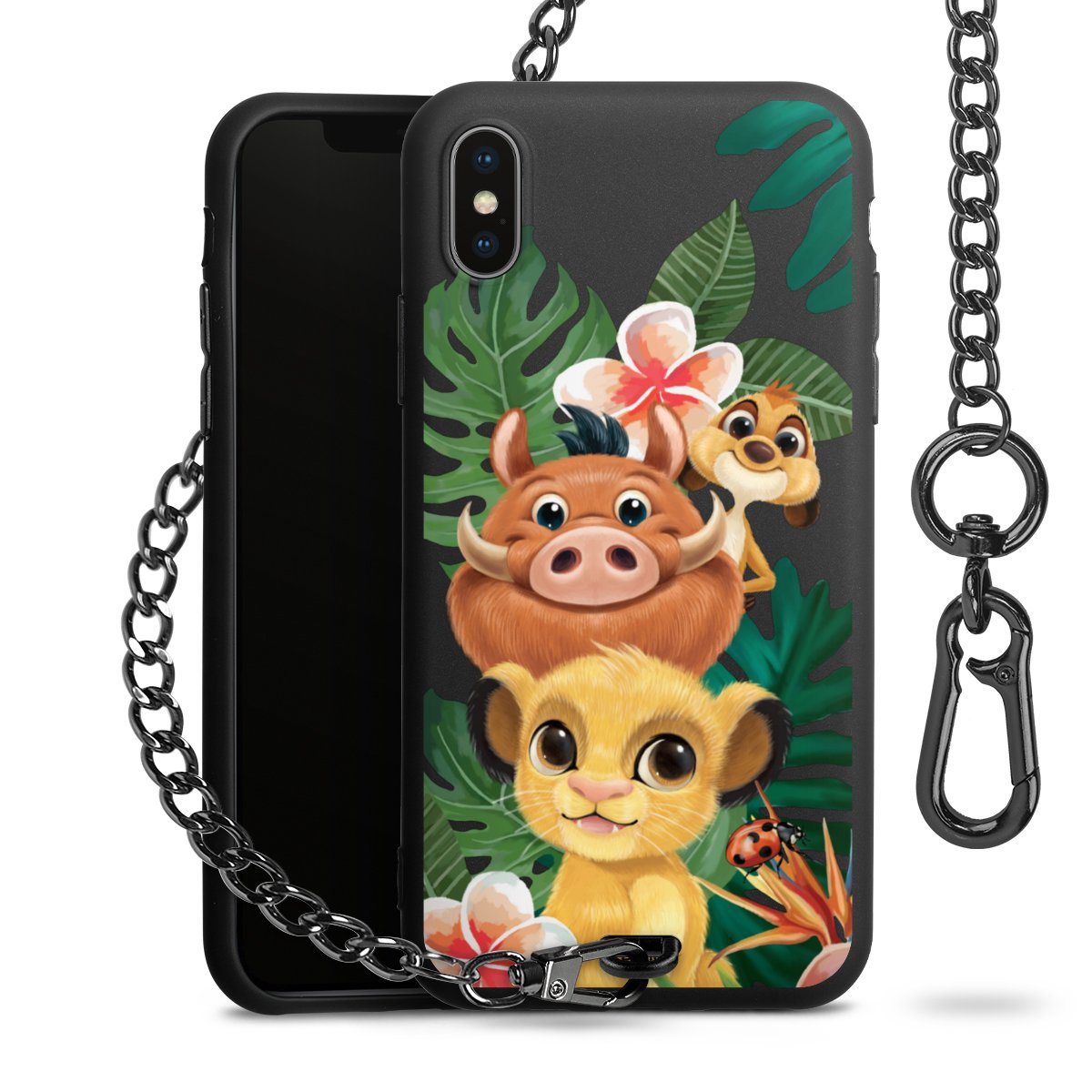 • Mattschwarze Handyhülle mit Metallkette