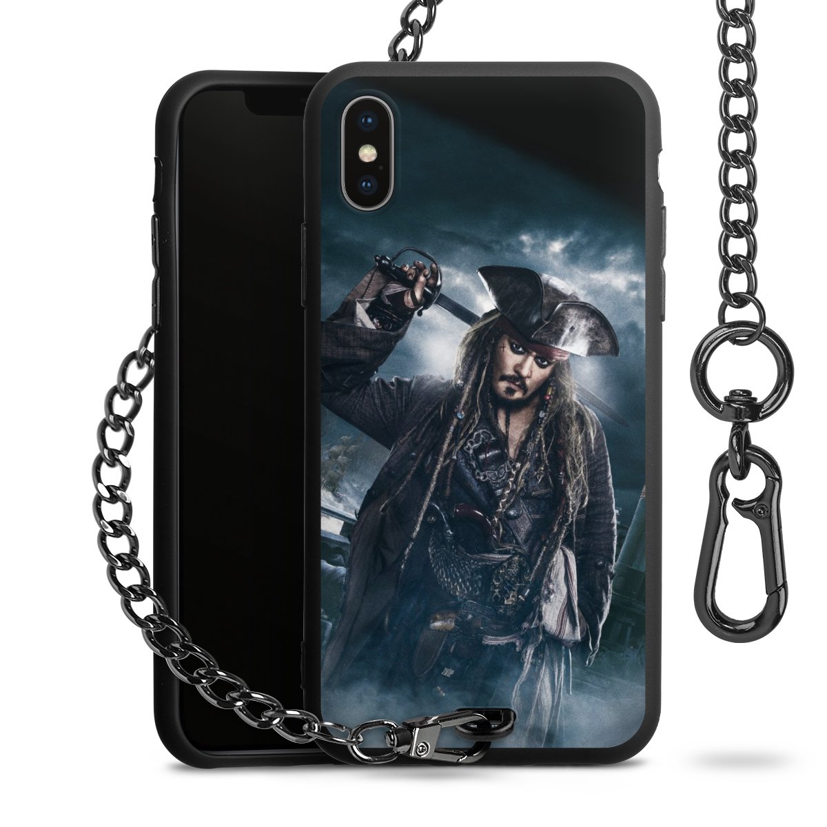• Mattschwarze Handyhülle mit Metallkette