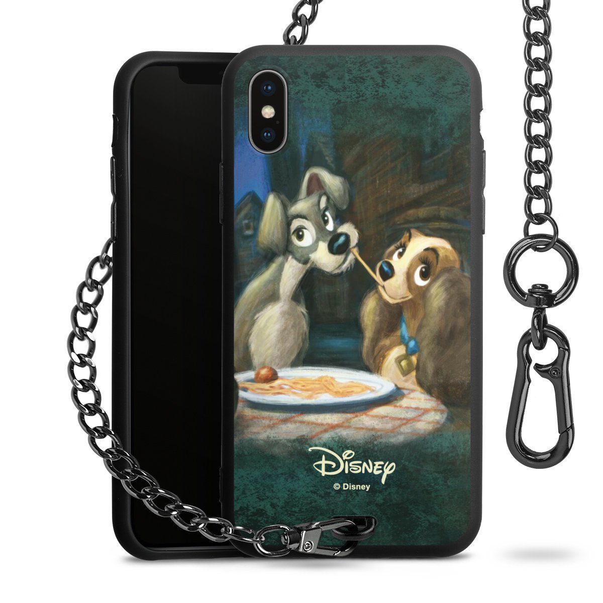 • Mattschwarze Handyhülle mit Metallkette