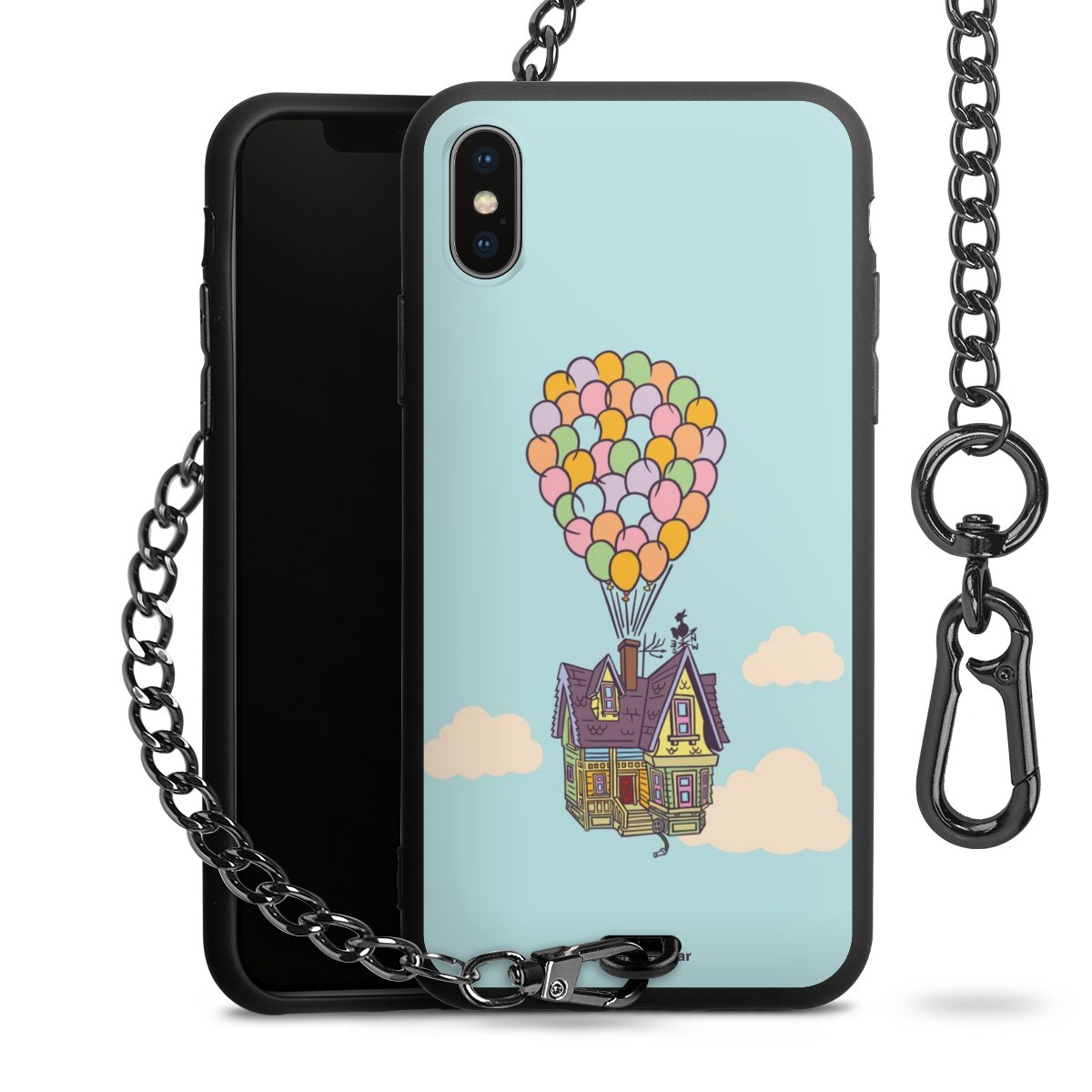 Die Handyhülle verfügt über eine mittig am unteren Rand platzierte Öse, an der die Metallkette stabil befestigt ist. Bestelle die Hülle einfach für Dein Smartphone-Modell, dann passt sie wie angegossen und Du brauchst sie bloß einmal anzudrücken. Handy in die Tasche, Karabiner an den Hosenbund – schon kann die Party starten.