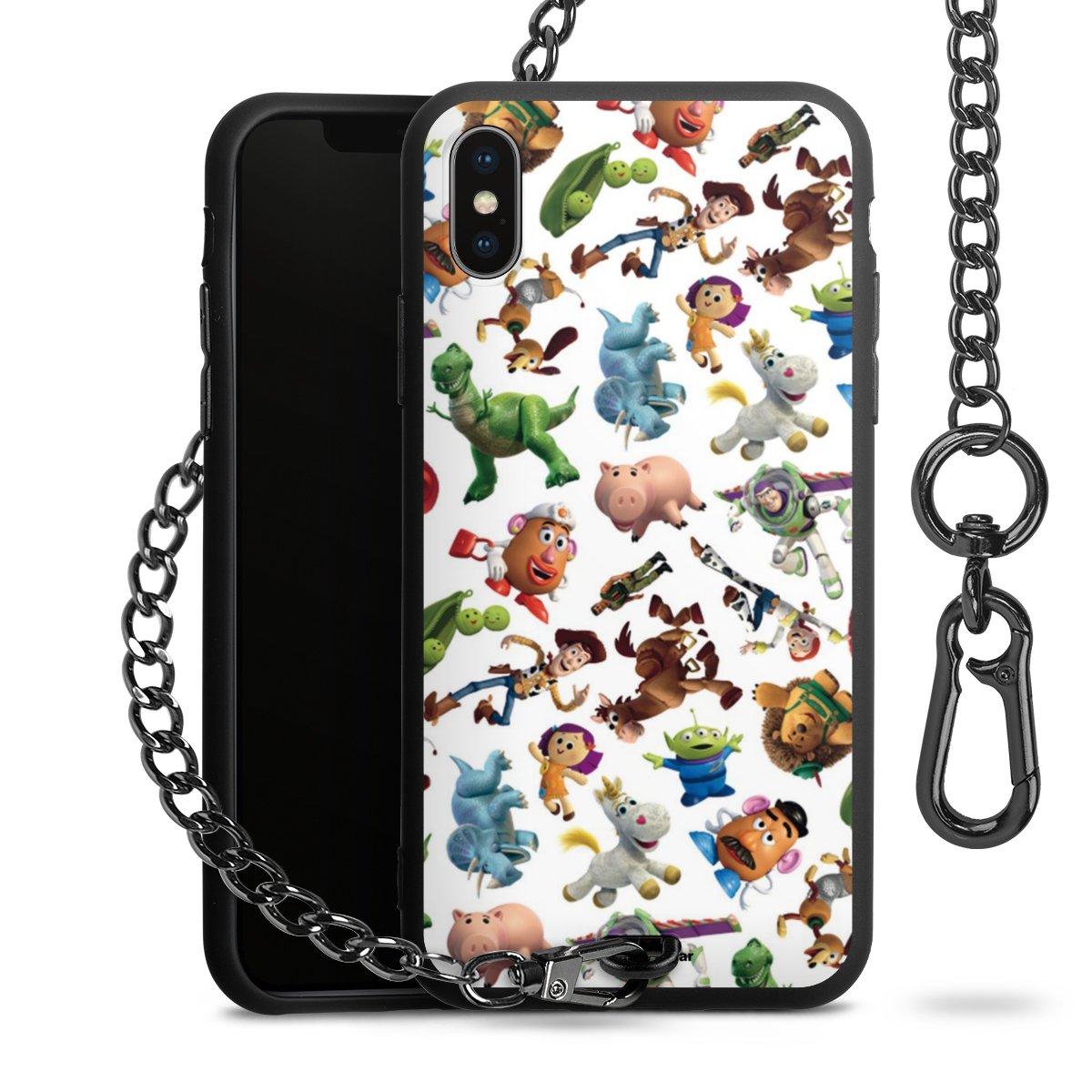 - Mattschwarze Handyhülle mit Metallkette