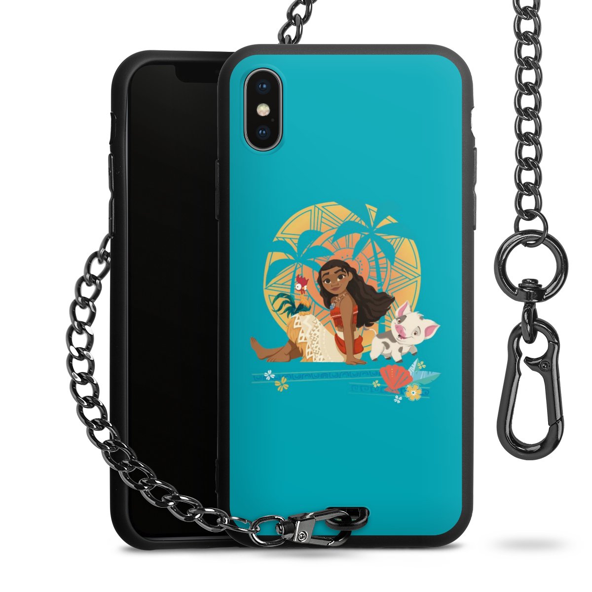 - Mattschwarze Handyhülle mit Metallkette