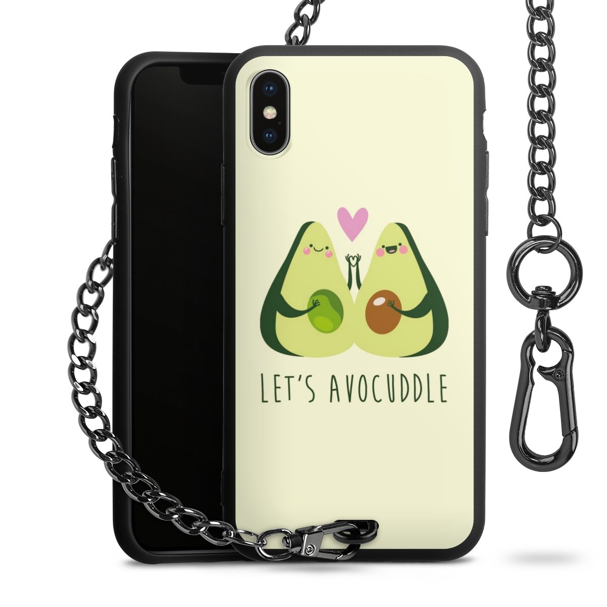 Die mattschwarze Silikon-Handyhülle besteht aus robustem TPU (thermoplastisches Polyurethan). Sie ist flexibel und schützt Dein Smartphone vor Stößen und Kratzern. Die Kette sowie der Karabinerhaken sind aus Metall in Gunmetal-Optik gefertigt. Für dieses Produkt kommen ausschließlich TÜV-geprüfte Materialien zum Einsatz.