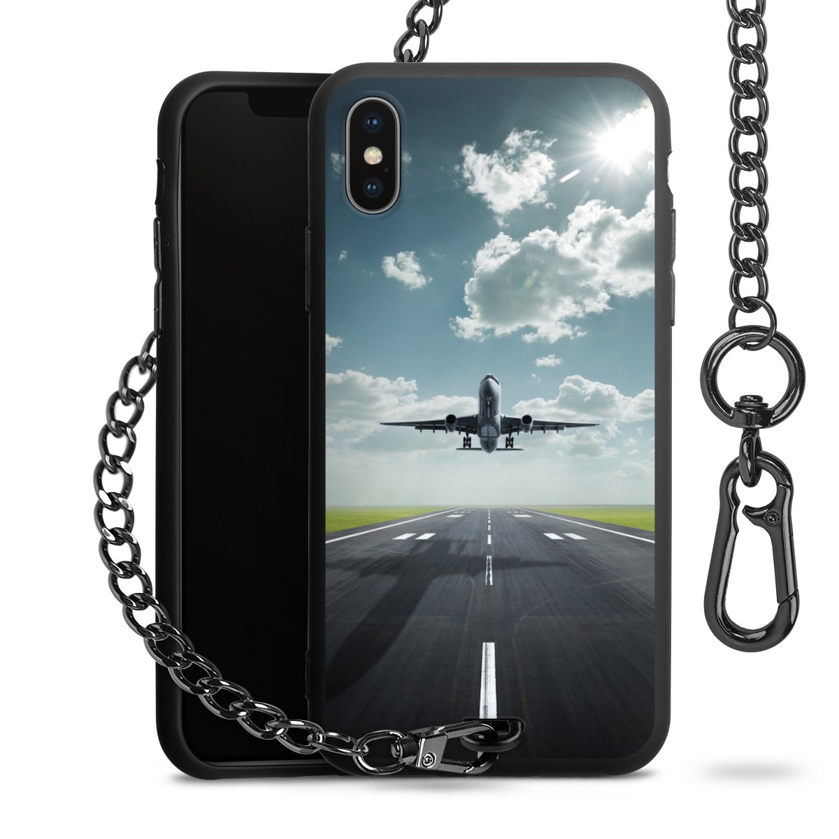 - Mattschwarze Handyhülle mit Metallkette