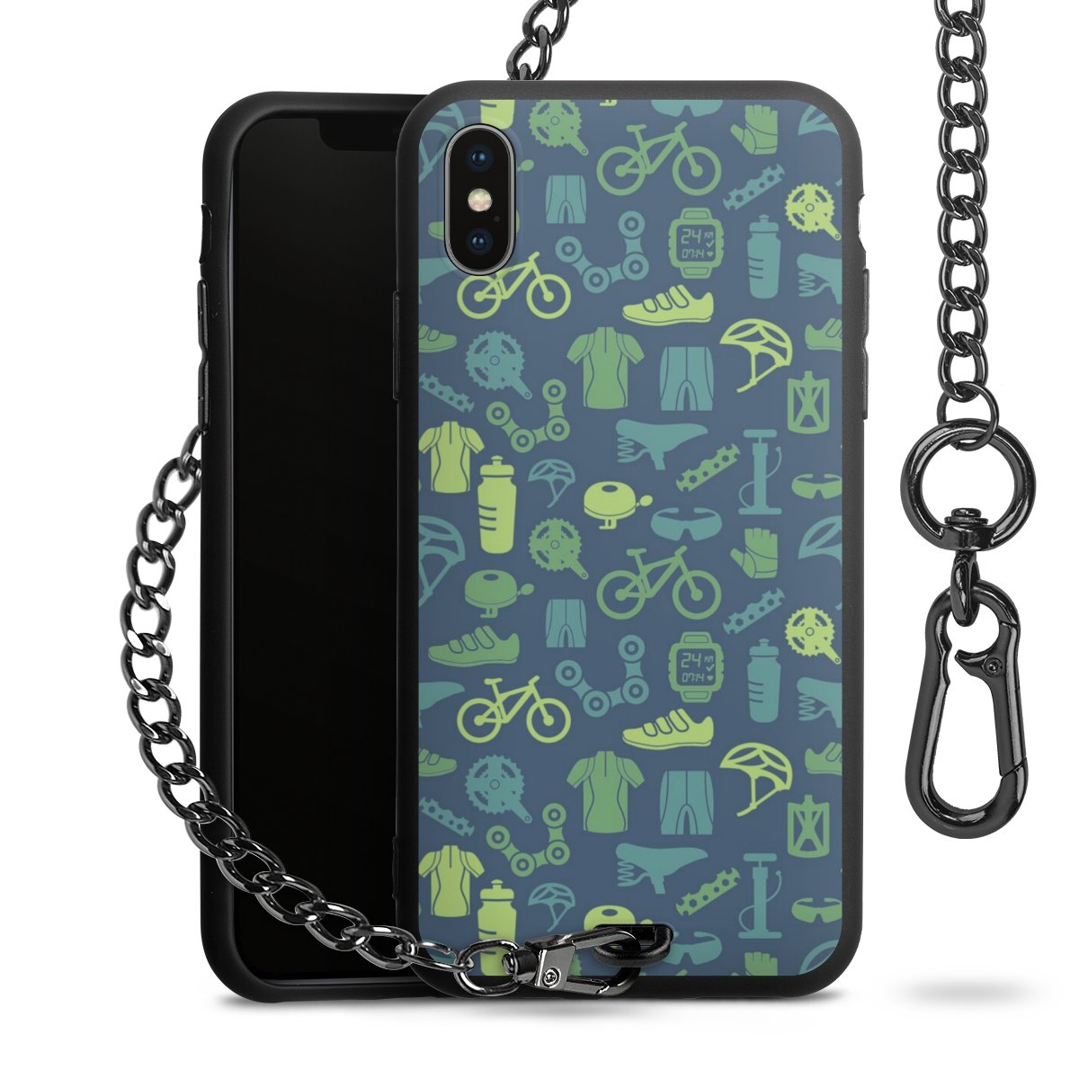 • Mattschwarze Handyhülle mit Metallkette