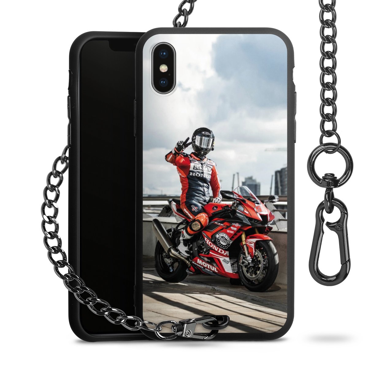 • Mattschwarze Handyhülle mit Metallkette