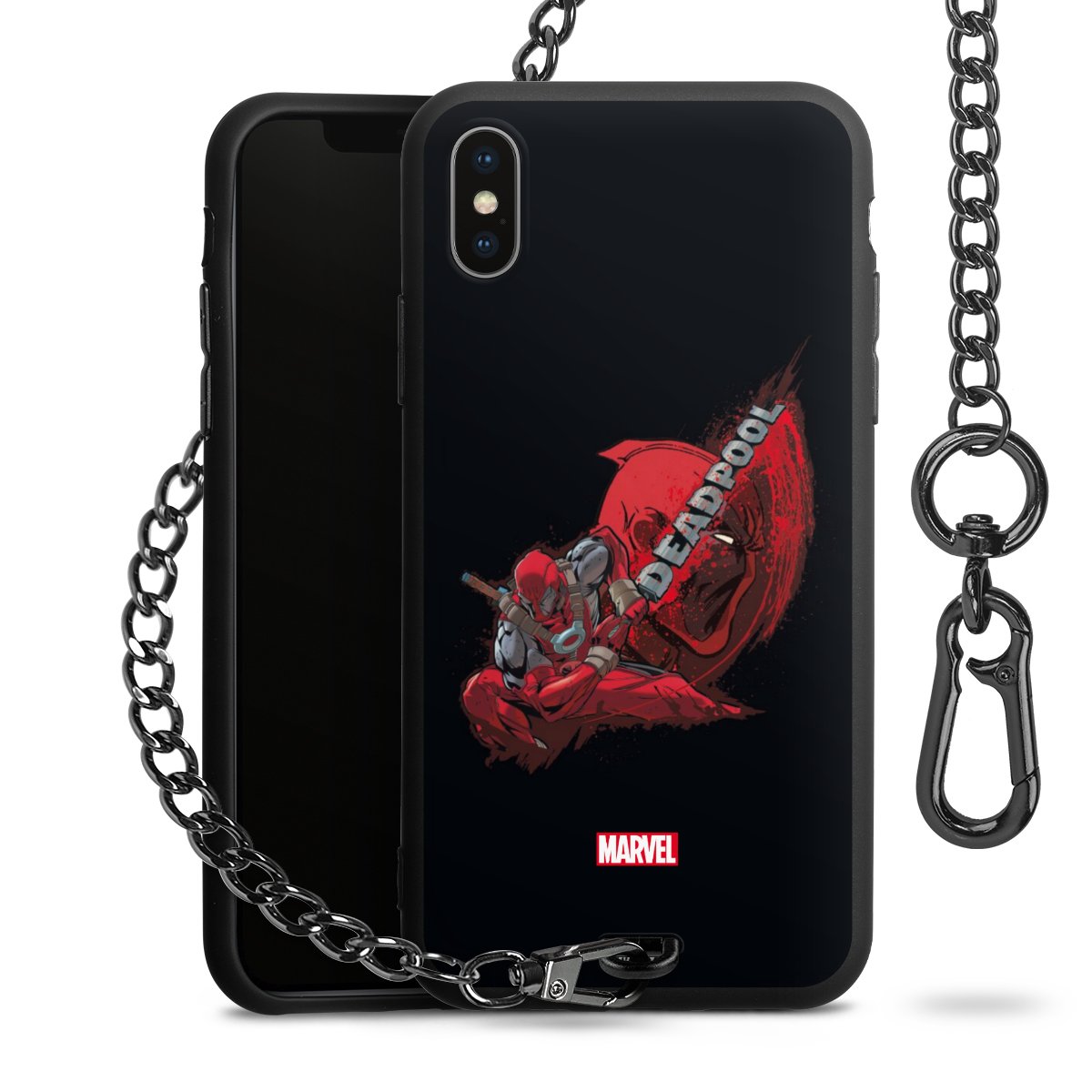 Die mattschwarze Silikon-Handyhülle besteht aus robustem TPU (thermoplastisches Polyurethan). Sie ist flexibel und schützt Dein Smartphone vor Stößen und Kratzern. Die Kette sowie der Karabinerhaken sind aus Metall in Gunmetal-Optik gefertigt. Für dieses Produkt kommen ausschließlich TÜV-geprüfte Materialien zum Einsatz.
