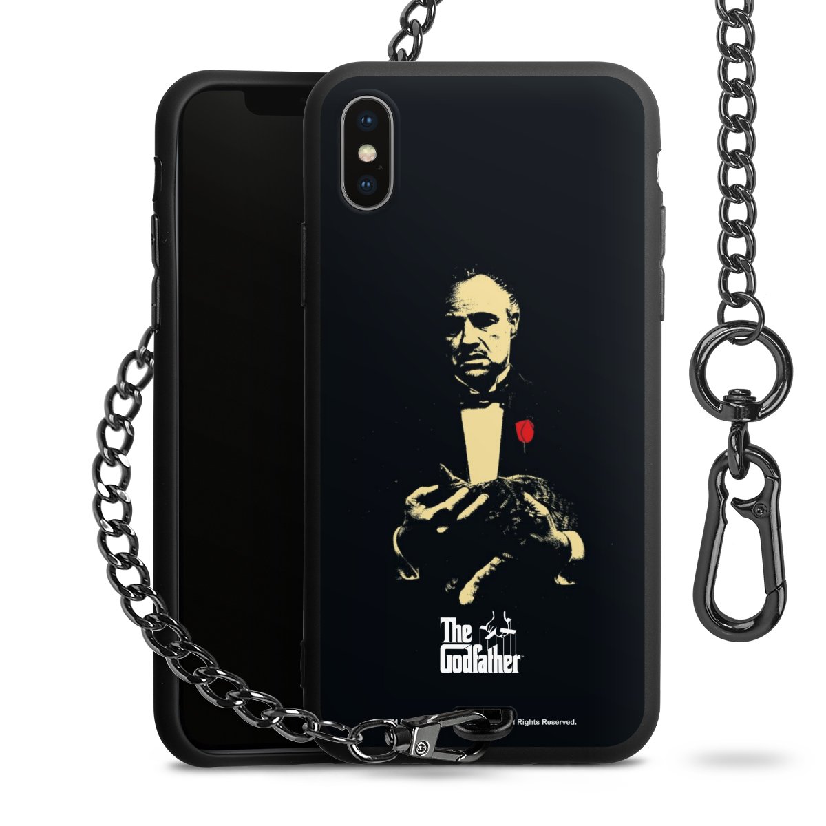 - Mattschwarze Handyhülle mit Metallkette