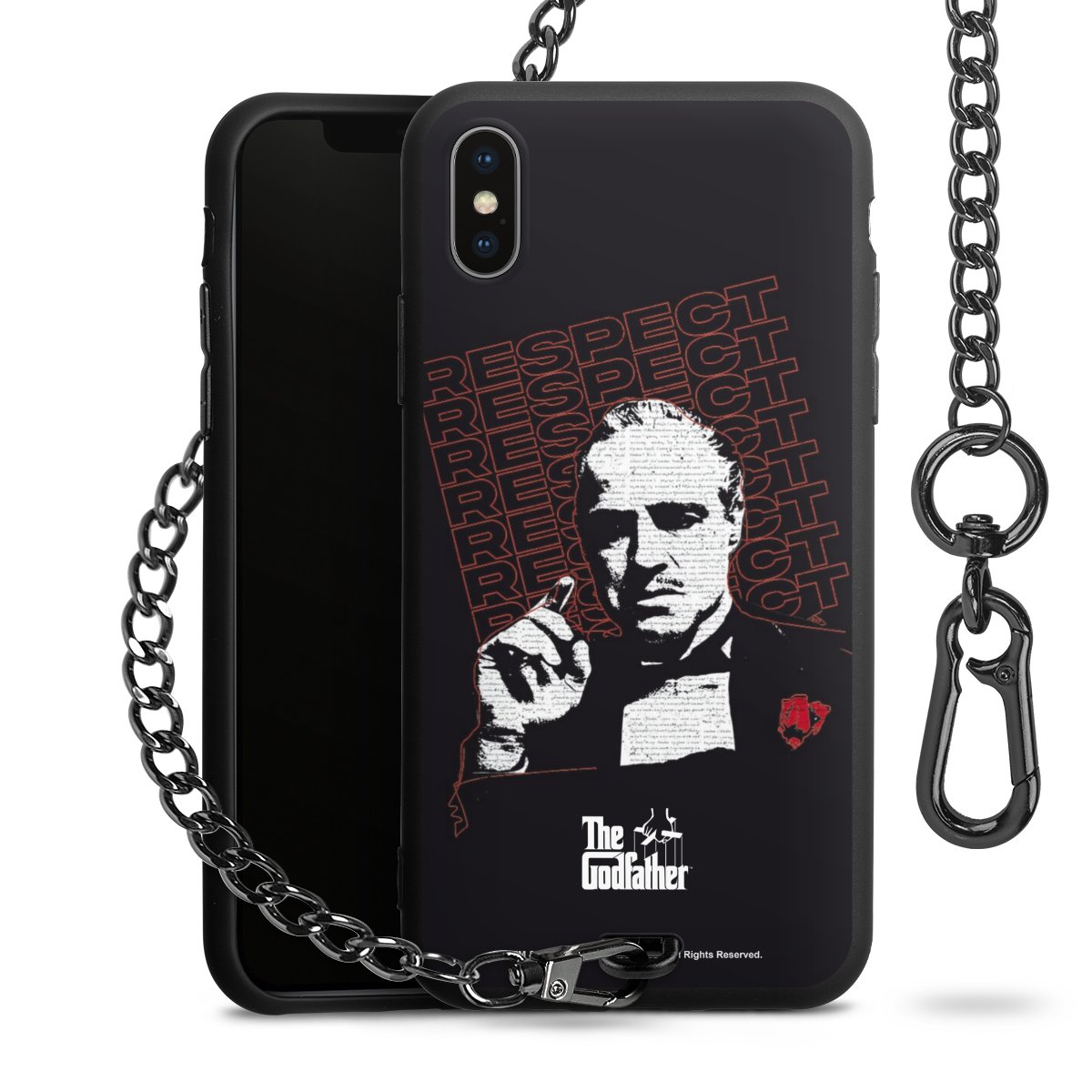 - Mattschwarze Handyhülle mit Metallkette