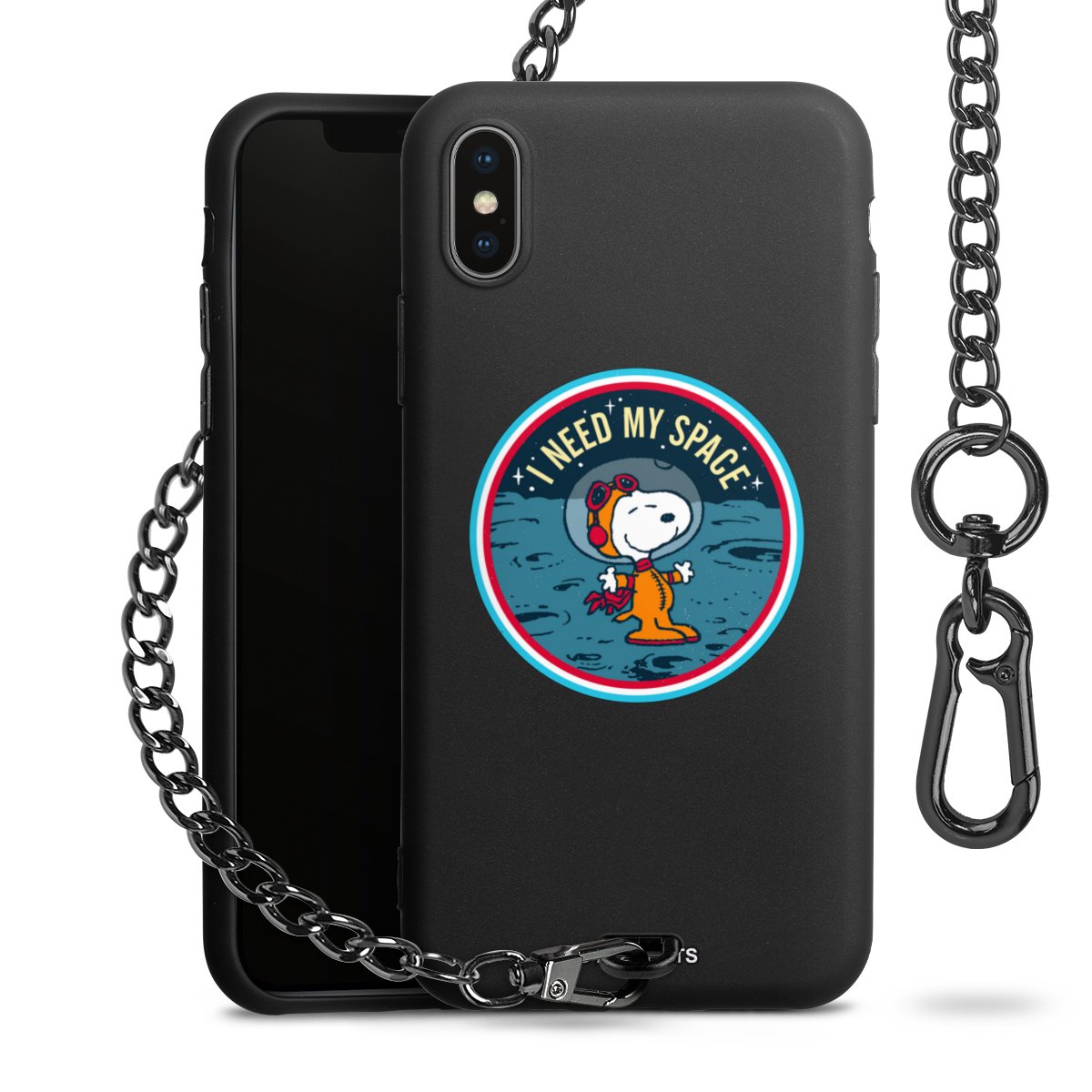 • Mattschwarze Handyhülle mit Metallkette