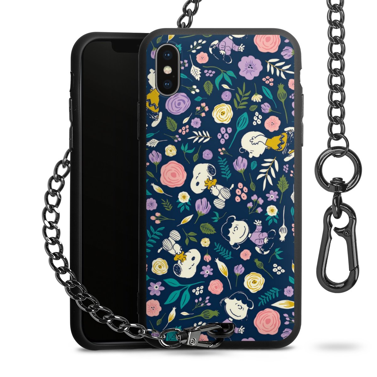 • Mattschwarze Handyhülle mit Metallkette