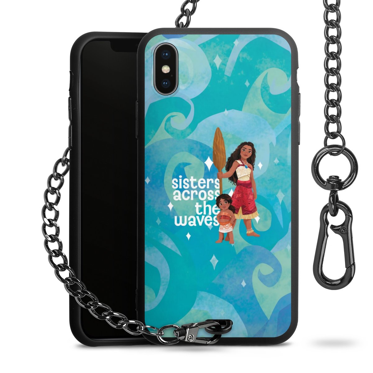 - Mattschwarze Handyhülle mit Metallkette