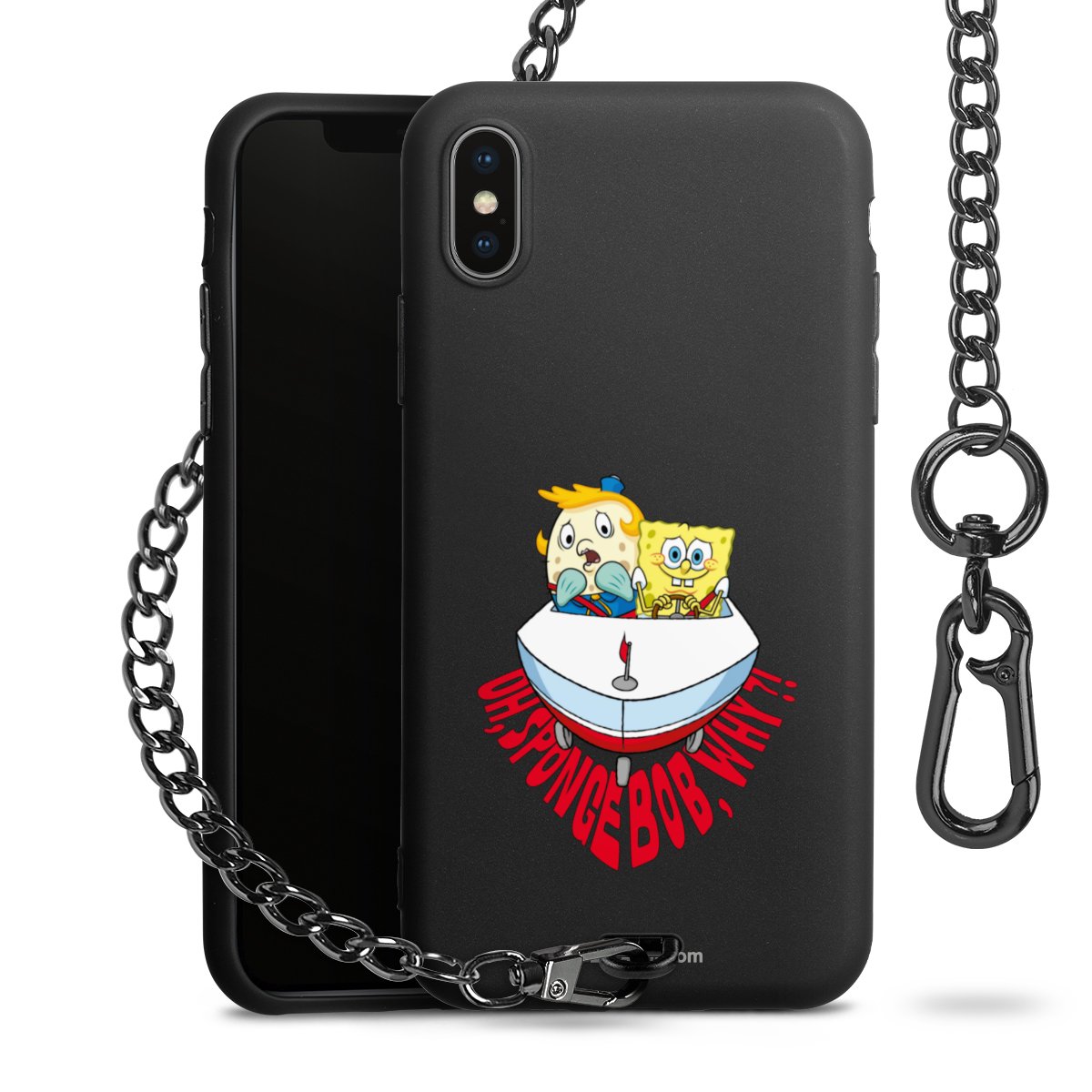 Die Handyhülle verfügt über eine mittig am unteren Rand platzierte Öse, an der die Metallkette stabil befestigt ist. Bestelle die Hülle einfach für Dein Smartphone-Modell, dann passt sie wie angegossen und Du brauchst sie bloß einmal anzudrücken. Handy in die Tasche, Karabiner an den Hosenbund – schon kann die Party starten.