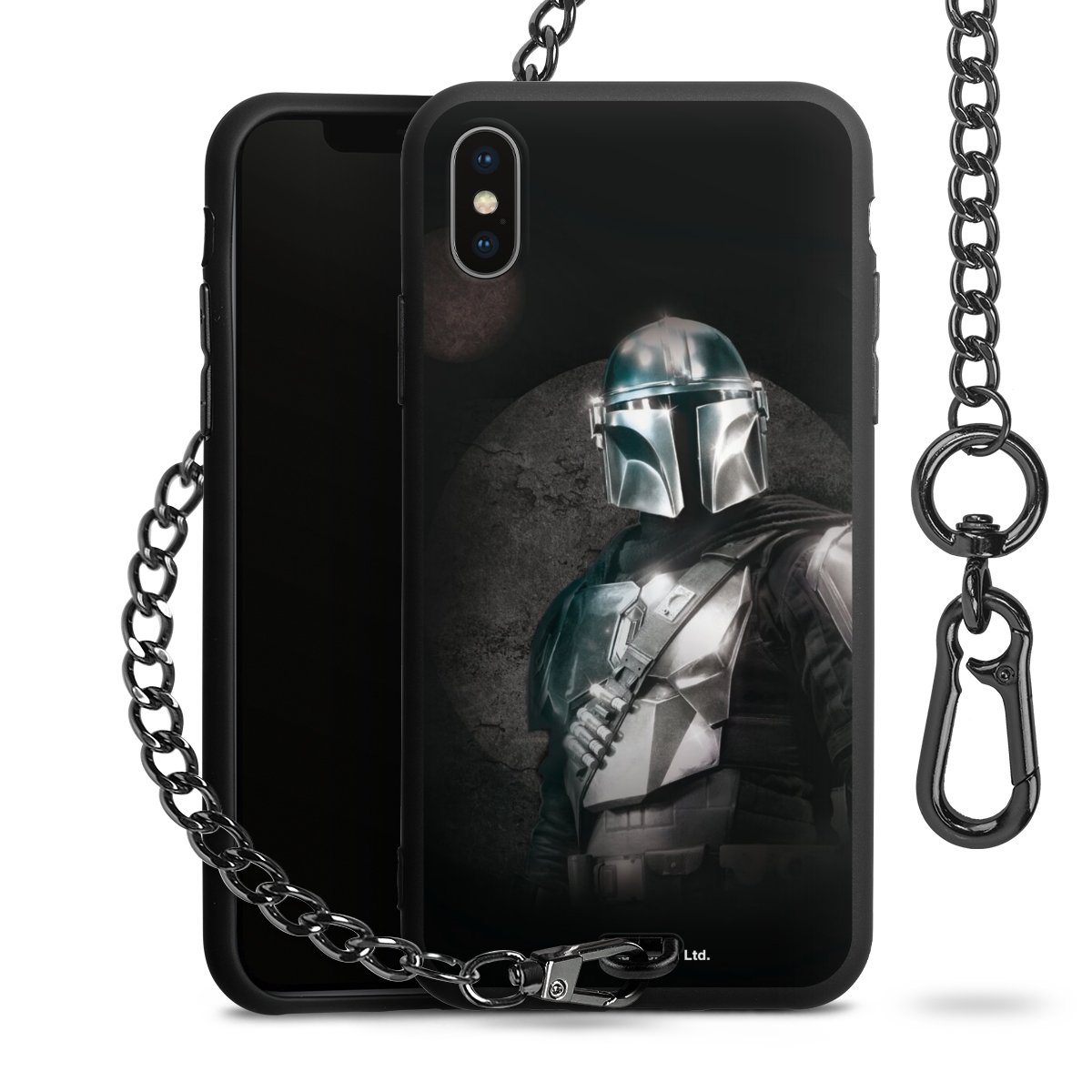 Die mattschwarze Silikon-Handyhülle besteht aus robustem TPU (thermoplastisches Polyurethan). Sie ist flexibel und schützt Dein Smartphone vor Stößen und Kratzern. Die Kette sowie der Karabinerhaken sind aus Metall in Gunmetal-Optik gefertigt. Für dieses Produkt kommen ausschließlich TÜV-geprüfte Materialien zum Einsatz.