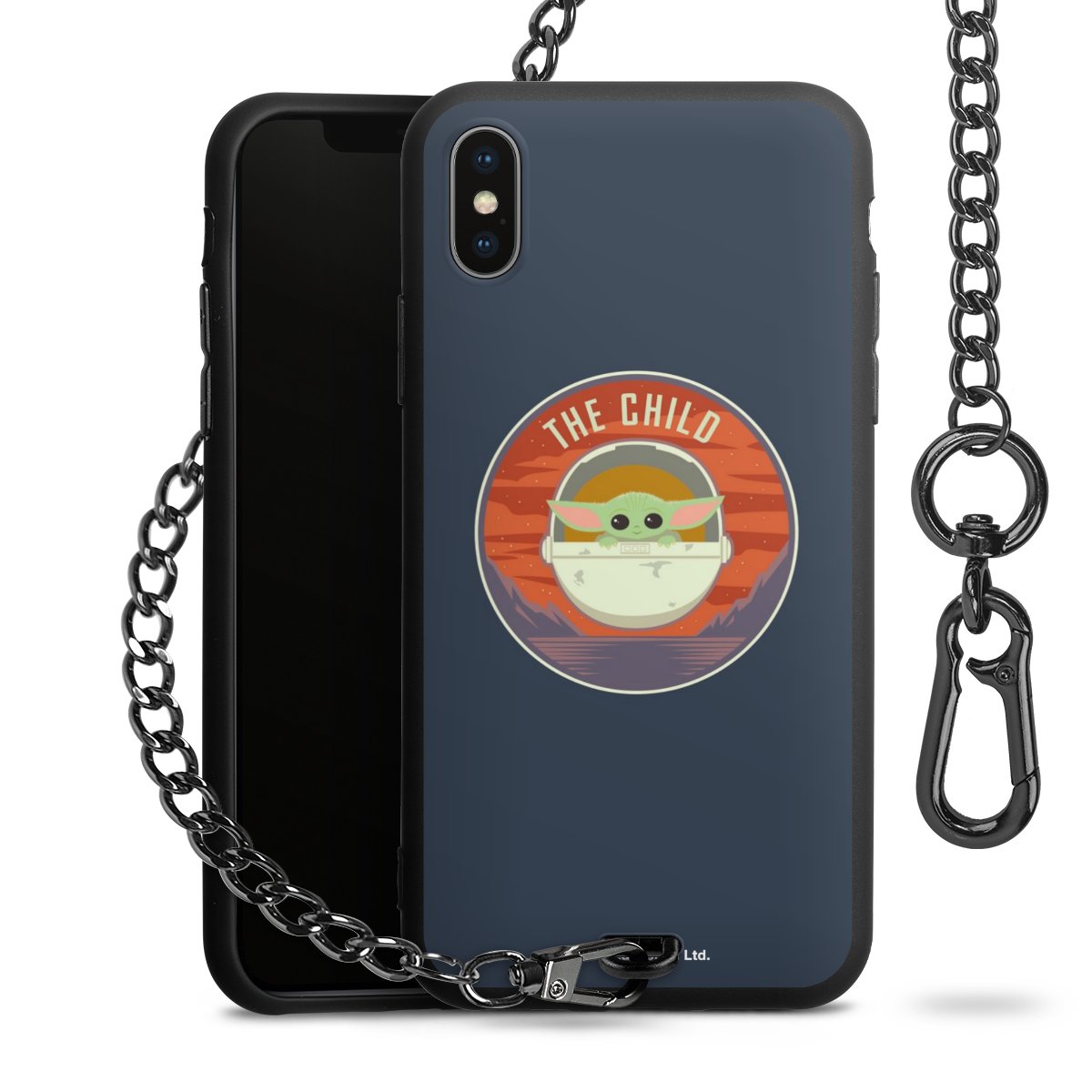 Die mattschwarze Silikon-Handyhülle besteht aus robustem TPU (thermoplastisches Polyurethan). Sie ist flexibel und schützt Dein Smartphone vor Stößen und Kratzern. Die Kette sowie der Karabinerhaken sind aus Metall in Gunmetal-Optik gefertigt. Für dieses Produkt kommen ausschließlich TÜV-geprüfte Materialien zum Einsatz.