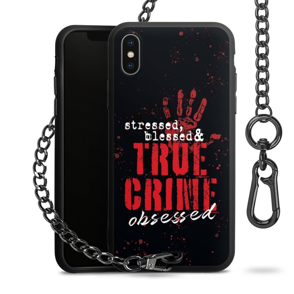 Die mattschwarze Silikon-Handyhülle besteht aus robustem TPU (thermoplastisches Polyurethan). Sie ist flexibel und schützt Dein Smartphone vor Stößen und Kratzern. Die Kette sowie der Karabinerhaken sind aus Metall in Gunmetal-Optik gefertigt. Für dieses Produkt kommen ausschließlich TÜV-geprüfte Materialien zum Einsatz.