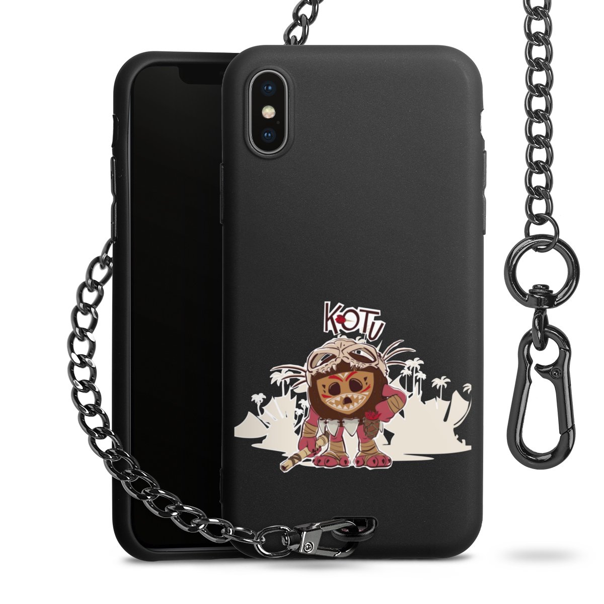 • Mattschwarze Handyhülle mit Metallkette