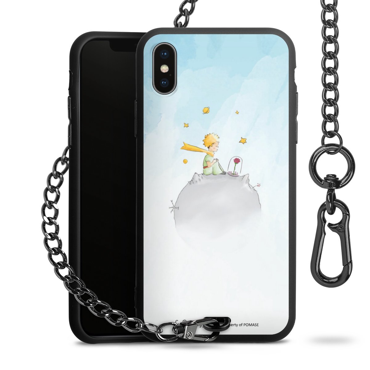 Die Handyhülle verfügt über eine mittig am unteren Rand platzierte Öse, an der die Metallkette stabil befestigt ist. Bestelle die Hülle einfach für Dein Smartphone-Modell, dann passt sie wie angegossen und Du brauchst sie bloß einmal anzudrücken. Handy in die Tasche, Karabiner an den Hosenbund – schon kann die Party starten.