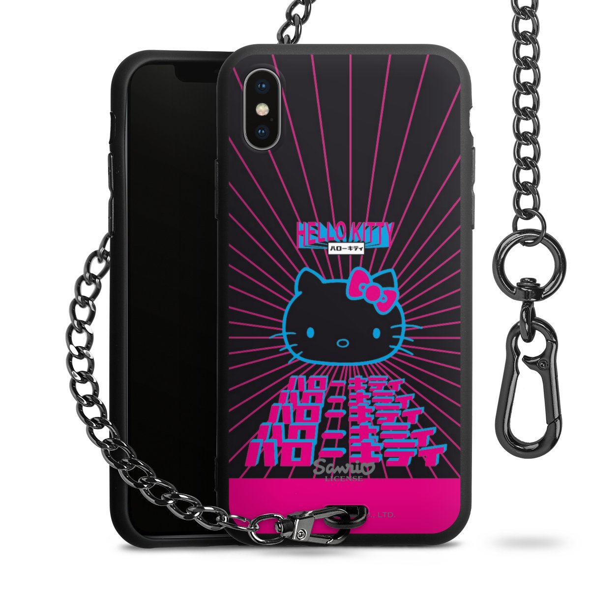 - Mattschwarze Handyhülle mit Metallkette