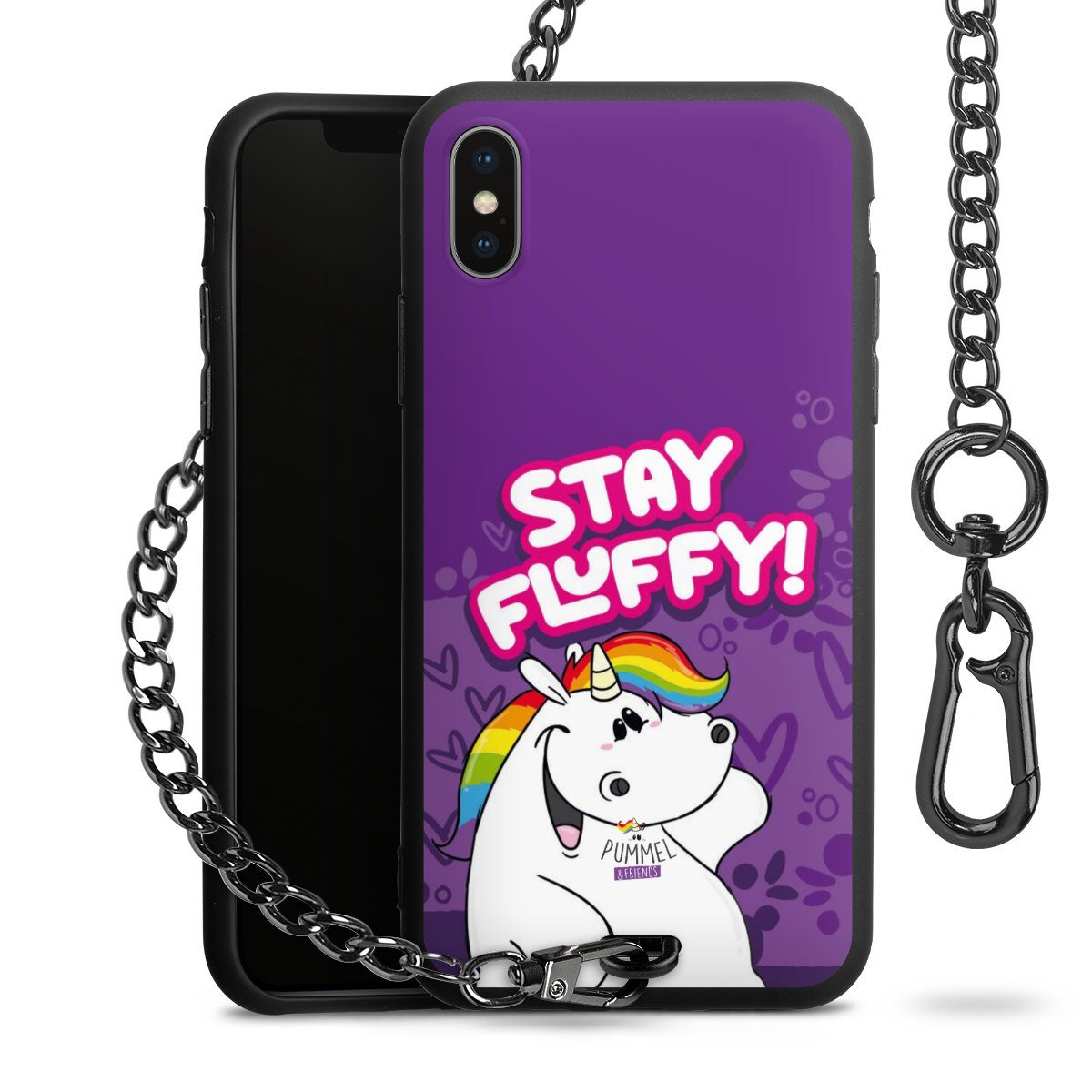 Die mattschwarze Silikon-Handyhülle besteht aus robustem TPU (thermoplastisches Polyurethan). Sie ist flexibel und schützt Dein Smartphone vor Stößen und Kratzern. Die Kette sowie der Karabinerhaken sind aus Metall in Gunmetal-Optik gefertigt. Für dieses Produkt kommen ausschließlich TÜV-geprüfte Materialien zum Einsatz.