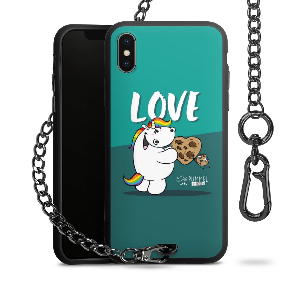 Die mattschwarze Silikon-Handyhülle besteht aus robustem TPU (thermoplastisches Polyurethan). Sie ist flexibel und schützt Dein Smartphone vor Stößen und Kratzern. Die Kette sowie der Karabinerhaken sind aus Metall in Gunmetal-Optik gefertigt. Für dieses Produkt kommen ausschließlich TÜV-geprüfte Materialien zum Einsatz.