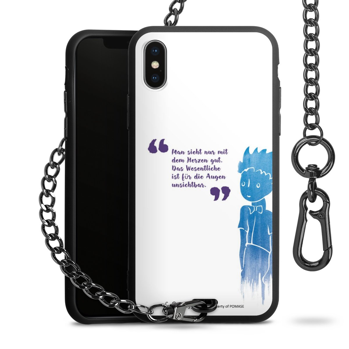 Die mattschwarze Silikon-Handyhülle besteht aus robustem TPU (thermoplastisches Polyurethan). Sie ist flexibel und schützt Dein Smartphone vor Stößen und Kratzern. Die Kette sowie der Karabinerhaken sind aus Metall in Gunmetal-Optik gefertigt. Für dieses Produkt kommen ausschließlich TÜV-geprüfte Materialien zum Einsatz.