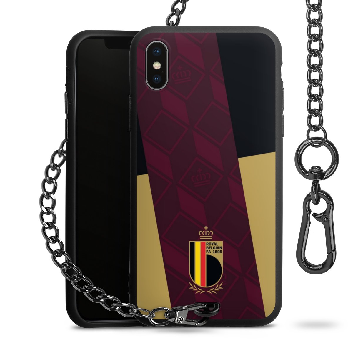 Die mattschwarze Silikon-Handyhülle besteht aus robustem TPU (thermoplastisches Polyurethan). Sie ist flexibel und schützt Dein Smartphone vor Stößen und Kratzern. Die Kette sowie der Karabinerhaken sind aus Metall in Gunmetal-Optik gefertigt. Für dieses Produkt kommen ausschließlich TÜV-geprüfte Materialien zum Einsatz.