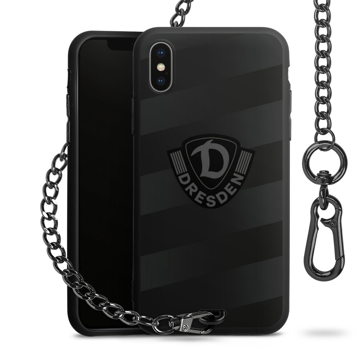 • Mattschwarze Handyhülle mit Metallkette
