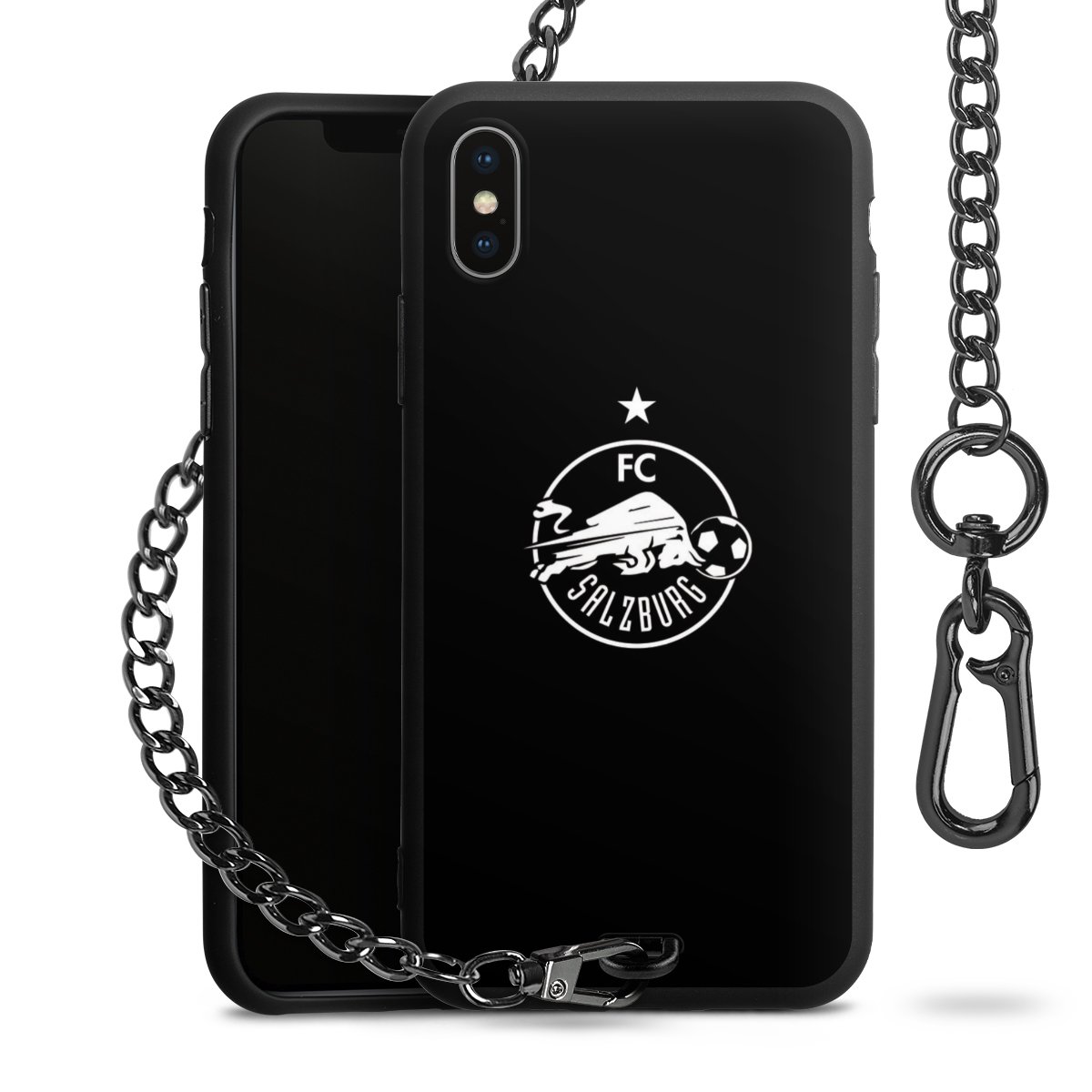 • Mattschwarze Handyhülle mit Metallkette