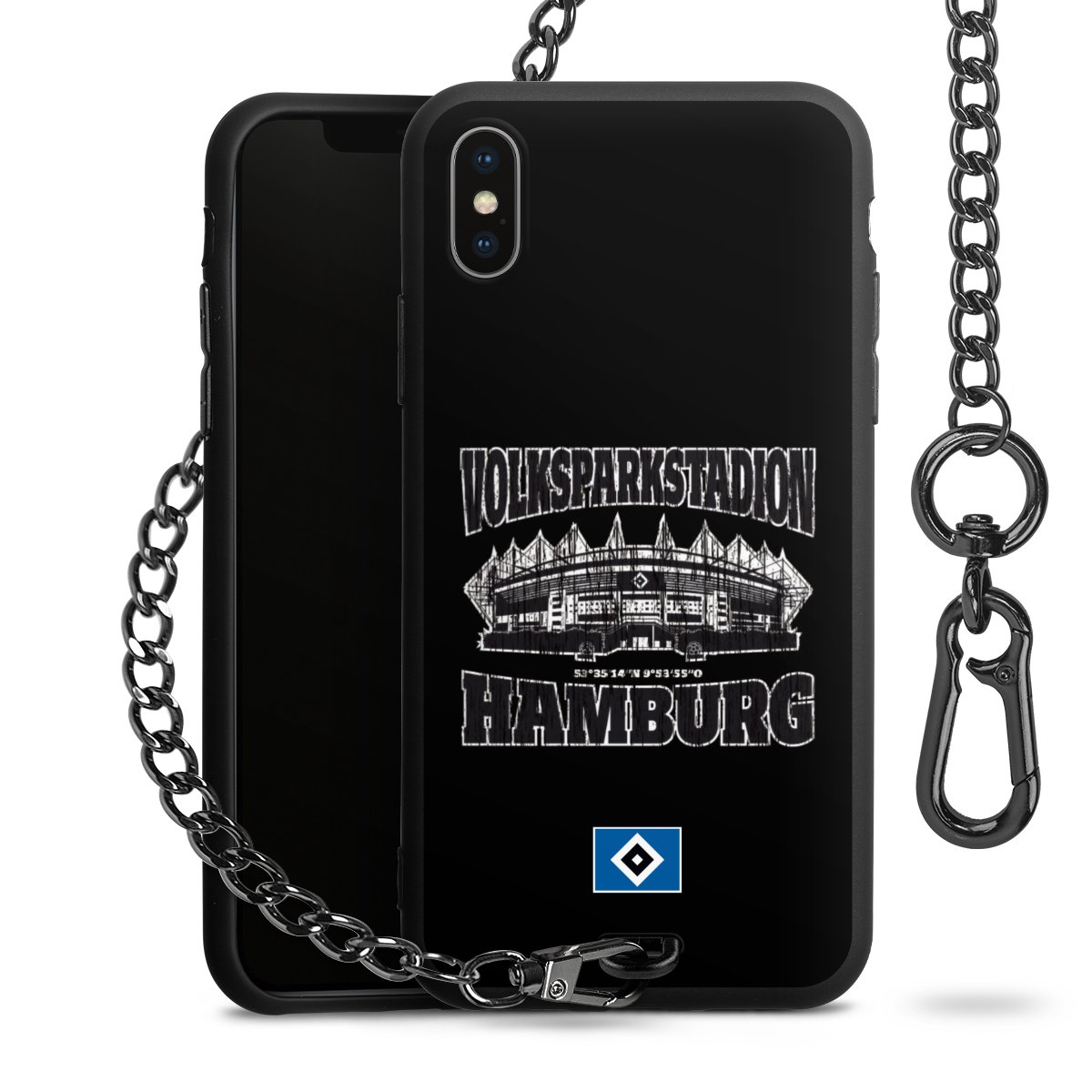 Die mattschwarze Silikon-Handyhülle besteht aus robustem TPU (thermoplastisches Polyurethan). Sie ist flexibel und schützt Dein Smartphone vor Stößen und Kratzern. Die Kette sowie der Karabinerhaken sind aus Metall in Gunmetal-Optik gefertigt. Für dieses Produkt kommen ausschließlich TÜV-geprüfte Materialien zum Einsatz.
