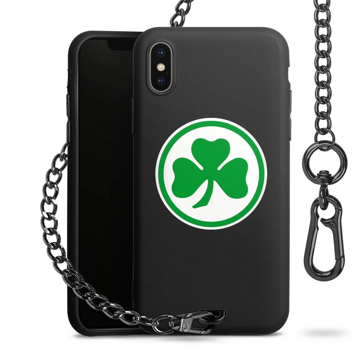 • Mattschwarze Handyhülle mit Metallkette