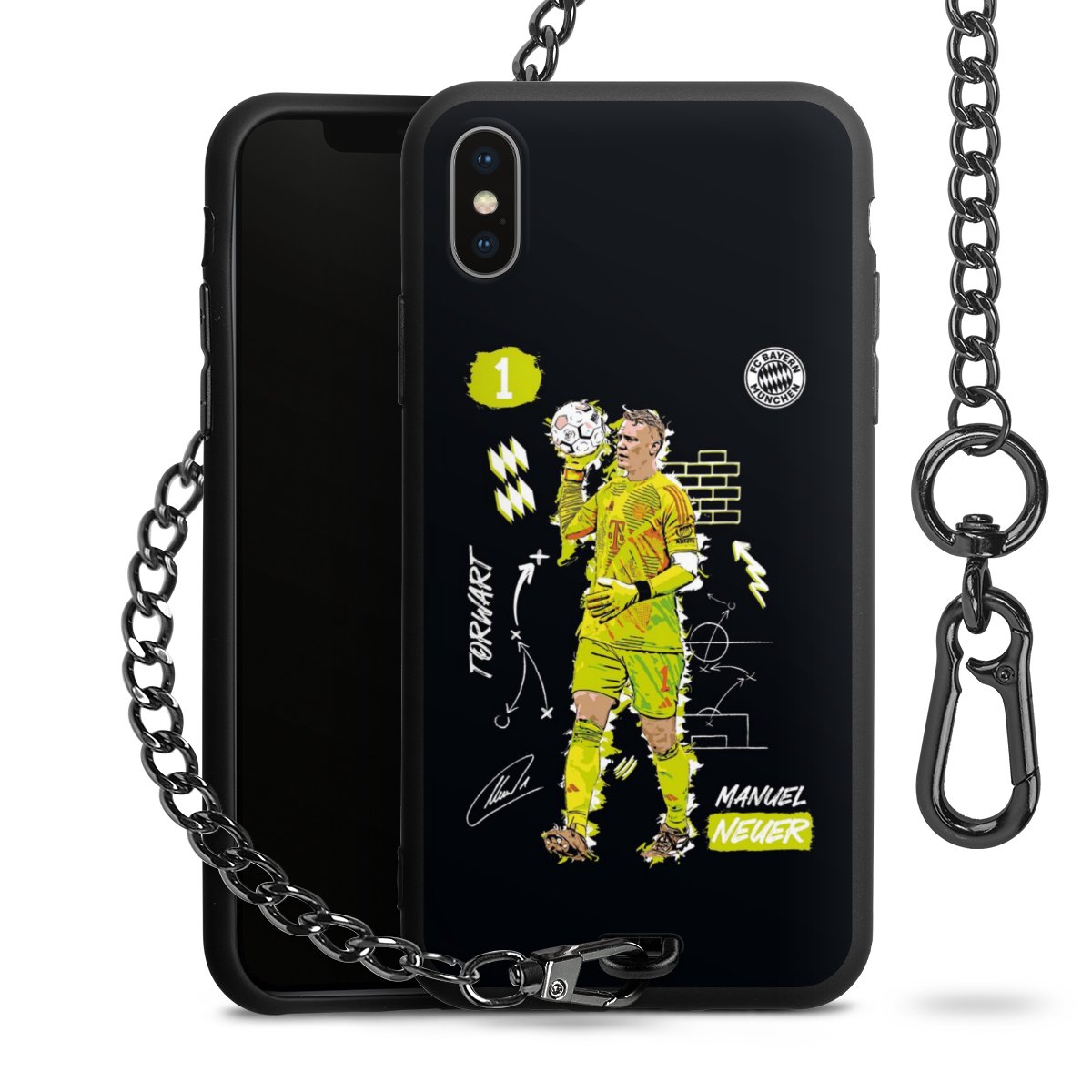 • Mattschwarze Handyhülle mit Metallkette