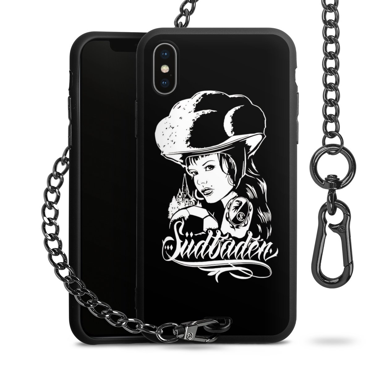 • Mattschwarze Handyhülle mit Metallkette