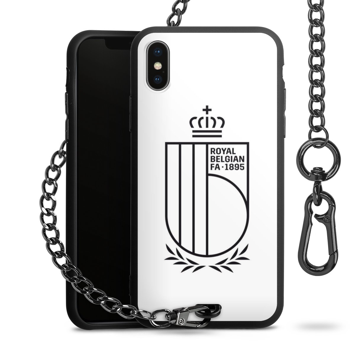 Ob im Alltag, beim Feiern mit Deinen Jungs oder auf Festivals – mit dem superpraktischen Belt Case steckst Du alle Sorgen um Diebstahl und Spider-App ganz entspannt in die Tasche. Es besteht aus einem coolen mattschwarzen Silikon Premium Case, dem Du ein individuelles Design verpassen kannst, und einer daran befestigten Kette in lässiger Gunmetal-Optik. Mit dem Karabiner auf der anderen Seite klickst Du die Kette mit einem Handgriff an Deine Gürtelschlaufe und schon ist Dein Smartphone sicher und stets griffbereit in der Hosentasche verstaut.