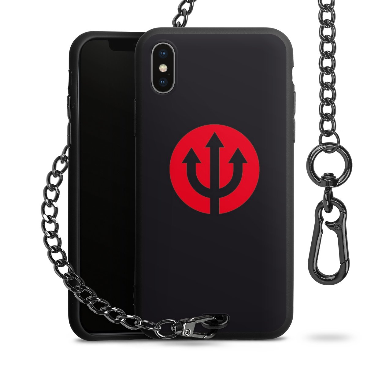 - Mattschwarze Handyhülle mit Metallkette