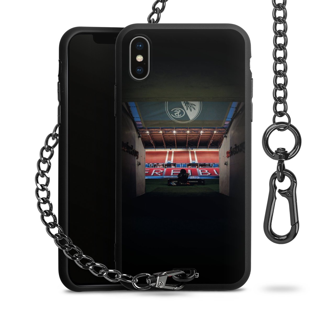 • Mattschwarze Handyhülle mit Metallkette