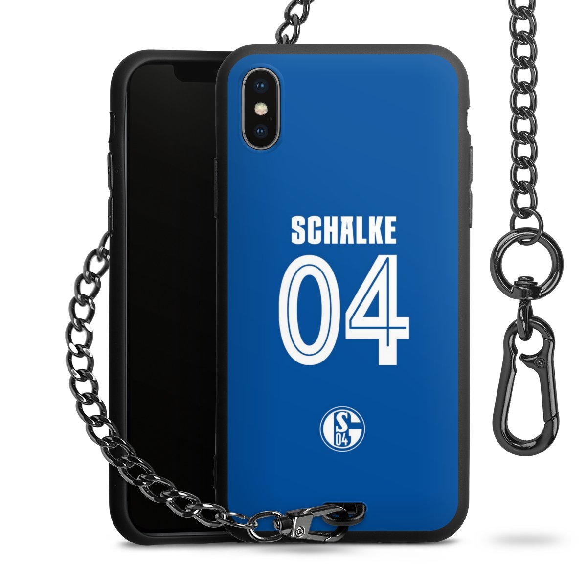 Die Handyhülle verfügt über eine mittig am unteren Rand platzierte Öse, an der die Metallkette stabil befestigt ist. Bestelle die Hülle einfach für Dein Smartphone-Modell, dann passt sie wie angegossen und Du brauchst sie bloß einmal anzudrücken. Handy in die Tasche, Karabiner an den Hosenbund – schon kann die Party starten.