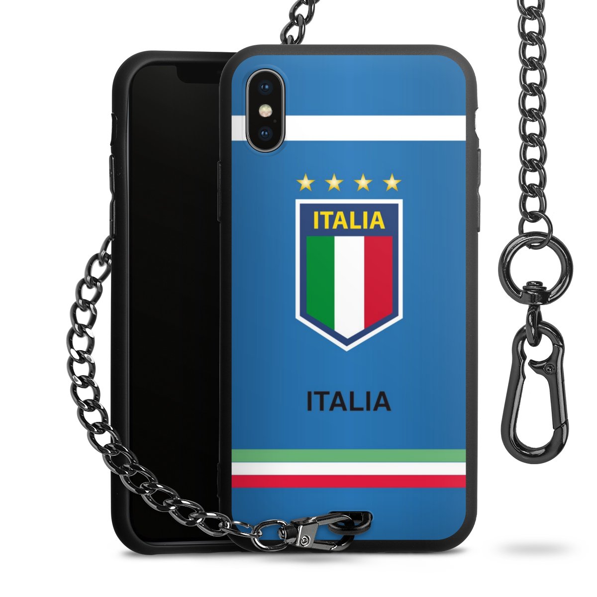 - Mattschwarze Handyhülle mit Metallkette